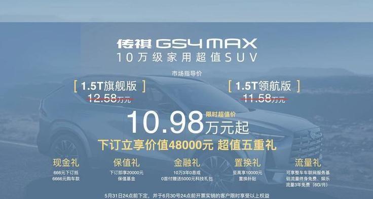 除此之外,現在下定傳祺GS4 MAX的用戶還能享受價值2萬元的保值基金,以及10萬3年免息金融禮,置換舊車最高可享1萬元置換補貼。但值得注意的是,以上權益需要在5月31日前下定,并且在6月30日前開票實銷的購車用戶才能享受。