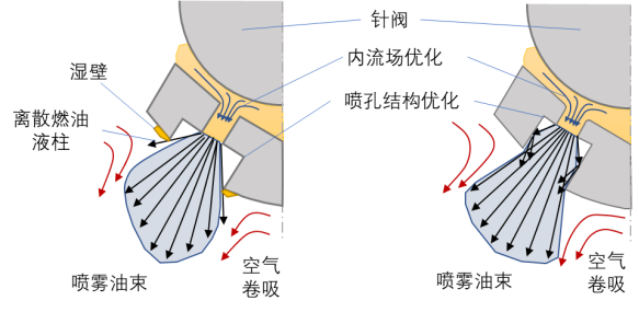 ■圖5 噴孔結構對于噴油器端部濕壁的影響機理