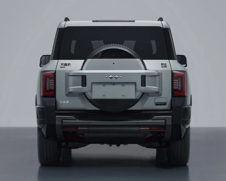 方程豹豹8,基于DMO超級混動越野平臺,外觀采用方盒子硬派設計,方正的造型四邊形大燈,隱藏式A柱和D柱,有一種機甲風設計風格。尾部是懸掛式備胎。。新車的長寬高分別為5195/1994/1875(含車頂行李架1905)mm,軸距為2920mm,可以選擇原廠的拖拽裝置。