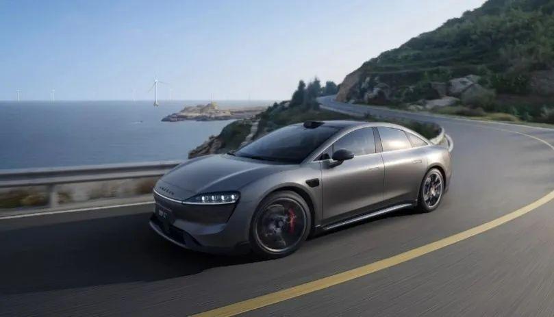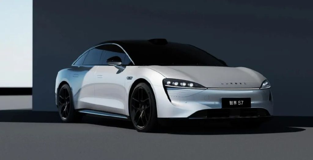 智界S7的外觀則更加具有視覺張力,前臉通過All-in-One 整合設計,將前大燈組、導流風孔、側氣簾,三者進行了融合設計,不過一眼望去,多少有點致敬保時捷Taycan。原創度并不是很高。車頭姿態低趴運動,圓潤飽滿的車身腰線,前后輪包略微凸出于車身,呈現出十足的肌肉感。高配版車型還配備了前運動包圍、側裙擾流板、碳纖維尾翼、尾部擴散器、黑化后視鏡、黑化翼子板等運動套件,運動氣息更突出。車身尺寸方面,智界S7的長寬高分別為4971/1963/1474(1472、1466、1460) mm,軸距2950mm。