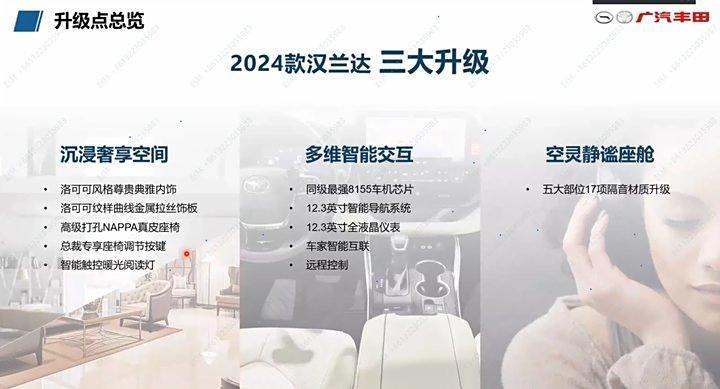 近日,廣汽豐田官方宣布,新款豐田漢蘭達(dá)將于5月31日上市,此次改款的重點(diǎn)是車內(nèi)配置,將對(duì)智能化配置、內(nèi)飾用料和靜音等方面進(jìn)行升級(jí),這也是根據(jù)老車主提出的建議做出修改,下面一起來看新車具體做了哪些改變。