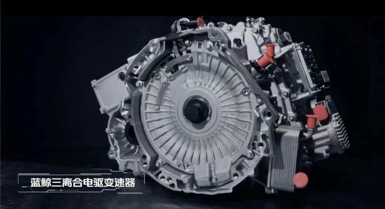 從結構層面來看,這套混動系統基本延續了燃油車上的藍鯨1.5T發動機,并在發動機和變速器中間“夾”了一臺P2布局的電機單元,通過離合器與發動機實現機電耦合&解耦,可實現純電、并聯混動、直驅模式。因為保留6速3離合變速器,所以電機也可以通過變速器實現速比轉化,不需要電機有多高的轉速就可以實現全域混合動力,相比“前橋雙電機”方案,其高速潛力更大,極速超過200km/h輕輕松松。