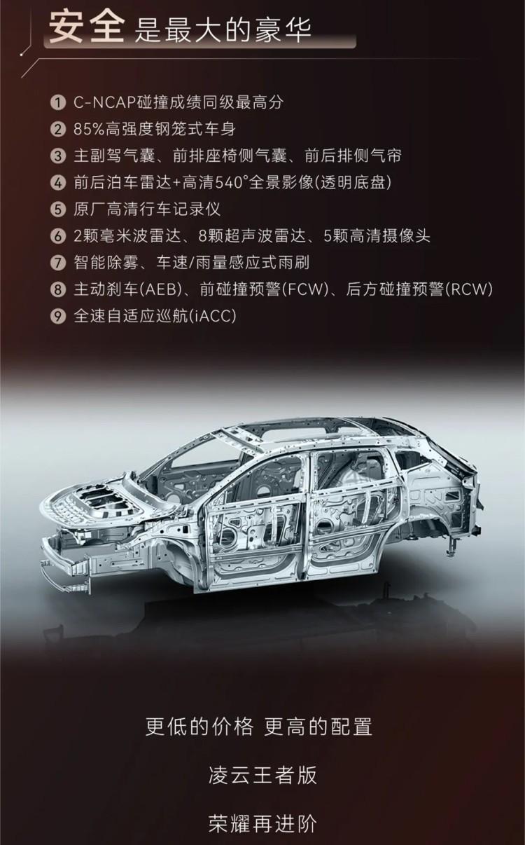 智駕方面,該車配備2顆毫米波雷達、8顆超聲波雷達、5個高清攝像頭,支持540°透明底盤、全速自適應巡航、主動剎車、前后碰撞預警等安全駕駛輔助功能。