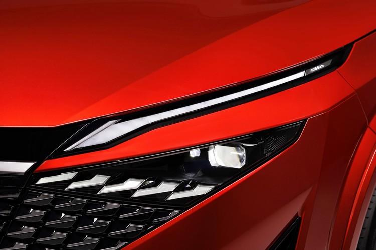 大燈組同樣是最新的設計,整體為獨特的分體式布局,細節上帶有自適應遠光燈模塊,點亮后的視覺效果比較出眾,與中網搭配得很不錯,可以說全新逍客的整個車頭明顯比現款車型要更有“侵略性”。