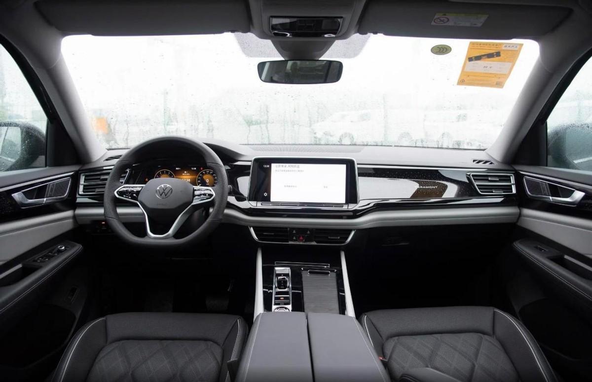 這款車的內飾部分,說實話并沒有給我帶來太大的驚喜。但越是如此,我相信選擇它的粉絲用戶越堅信合資品牌的做工和可靠性。在車內看不到大面積的軟包材質包覆,也看不到大尺寸中控屏,有的只是雙色拼搭內飾,以及大面積的鋼琴烤漆黑色飾板。橘色的液晶儀表主要用來顯示車速、轉速等關鍵行駛信息,方向盤握持手感緊實,撥桿樣式的電子擋把造型精致,搭配觸控式空調控制面板,為整車內飾增加了一些精致氣息。此外,副駕駛儀表臺還設計了模仿“星空”樣式的裝飾圖案,上面使用激光打印鐫刻了“TERAMONT”的車型名稱,細節沒有太多柔軟的質感可以感受,但直來直去的線條讓人似乎看到了德國人的嚴謹。總的來說,這套內飾可能耐用、實用,但不一定能滿足當下年輕消費者對智能座艙的期待。