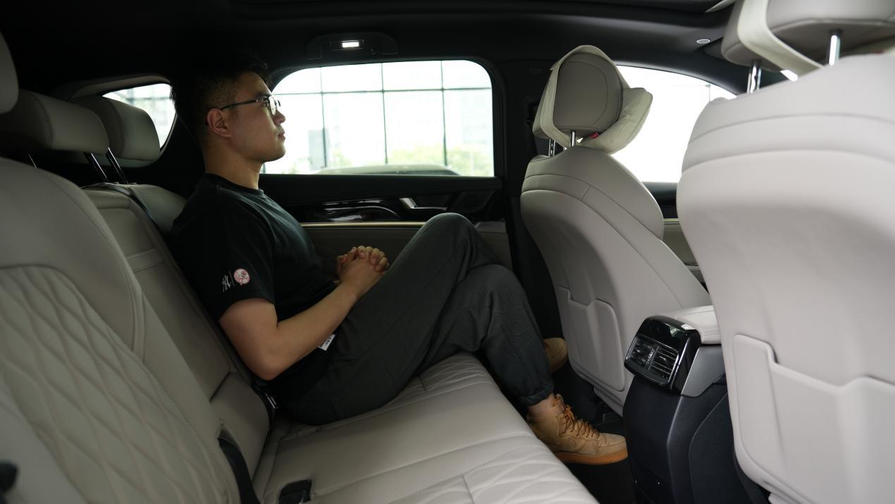 調(diào)整好前排的坐姿之后,坐進(jìn)后排,感覺腿部空間還是比較寬敞的,可以向前很舒服地伸開,這在長途坐車時不會帶來疲勞感,橫向空間也比較寬敞。空間方面,比亞迪漢已經(jīng)超過了大多數(shù)的合資B級車。