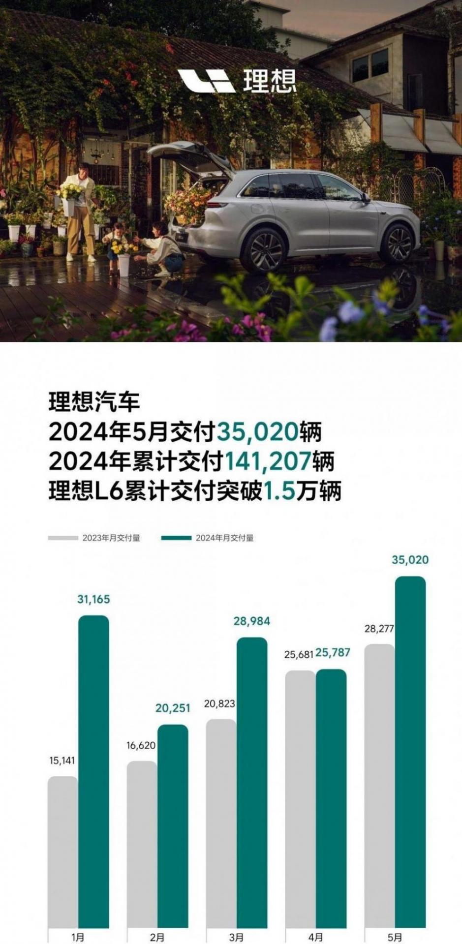 憑借“移動(dòng)的家,安全的家”概念火出圈,依靠套娃式的L9、8、7、6 SUV以及公路高鐵Mega MPV,理想在5月份依舊取得了35020輛的好成績,坐擁“蔚小理”造車新勢力三巨頭中的頭把交椅。