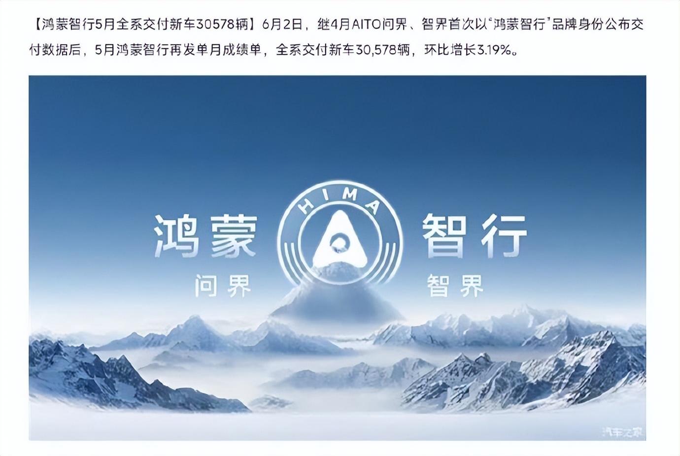 鴻蒙智行是華為旗下的智選車品牌,擁有問界、智界、享界、傲界四大搭檔組合,目前市場上有拿真車出來開賣的就問界和智界,5月份銷量30578輛,環(huán)比增長3%。