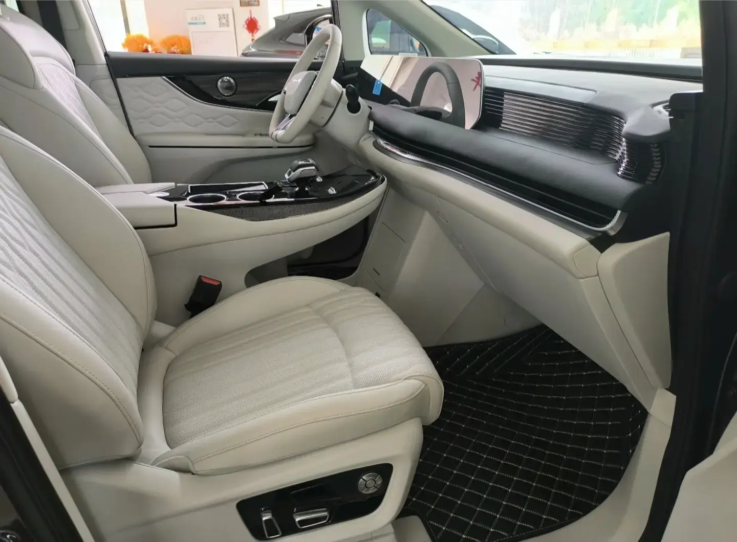 除此之外,例如精致的電子檔桿,大面積開放式的儲物格杯架手機無線充電面板,運動的平底方向盤等細節都不會太大變化,撞色內飾也提供了更加豐富的選擇,驍龍8155車機芯片L2+級輔助系統都在高配得到了配置。當然對于一款高端商務MPV第2排才是最關鍵的表現,無論是高低配都設計了中央岔開通道的雙獨立座椅,區別只是內側扶手高配車型有著獨立的觸摸屏用來控制通風加熱按摩座椅調節等多種配置,提供了更加舒適的體驗。