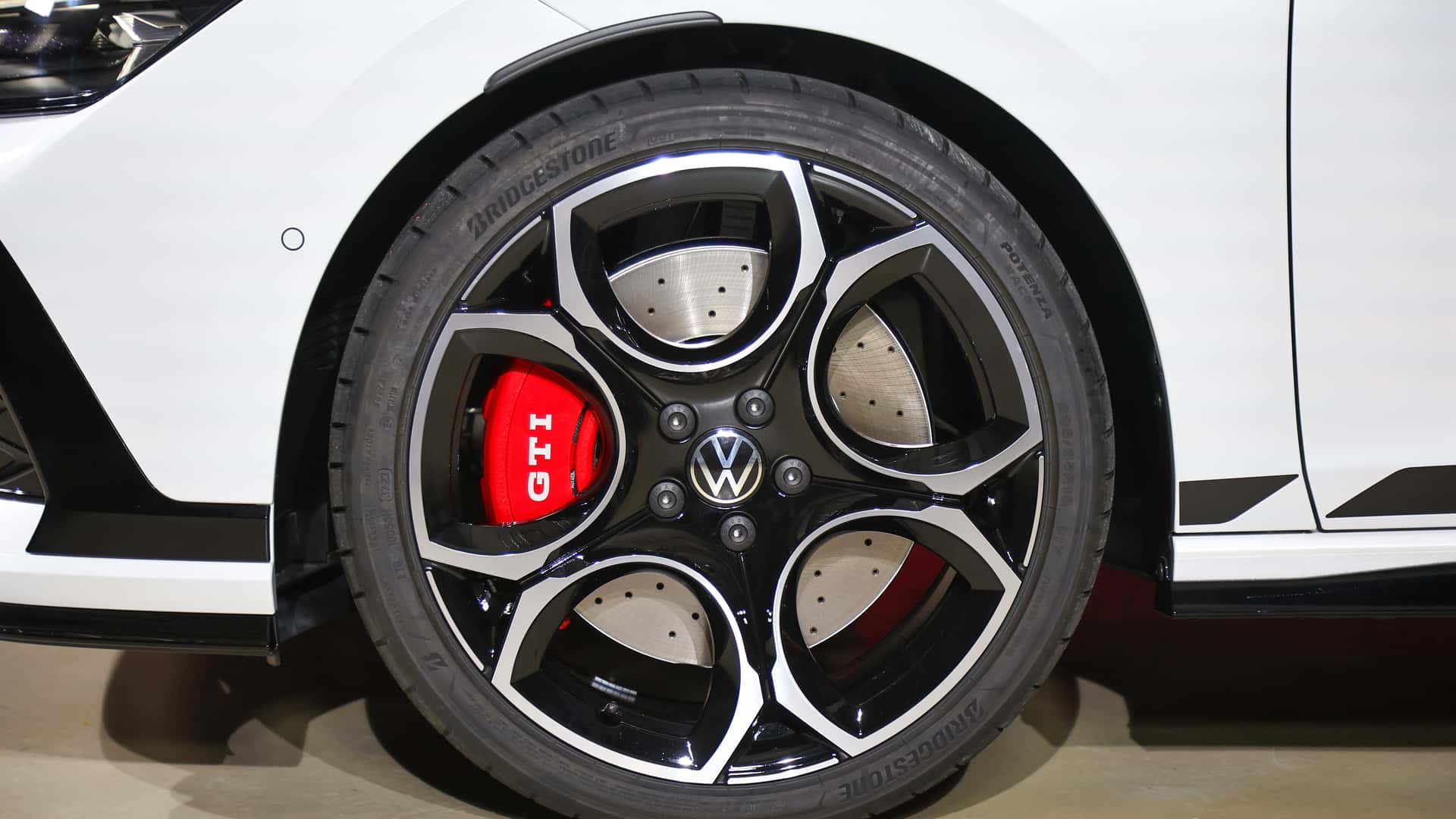 車身側面,標志性的高爾夫線條有著更加低矮的離地間隙,側裙處的黑色裝飾條,獨特的大尺寸,花瓣狀輪轂,紅色剎車卡鉗等元素,時刻刺激駕駛者的運動神經。打孔剎車盤提供了出色的制動效能。在車尾部分,車頂有著更加夸張的分體式擾流板提升了空氣動力學效果,黑色的包邊彰顯了運動的姿態。尾燈沒有太大的變化,大眾車標下方依舊是GTI字母標志,沒有其他特殊的細節,后保險杠部分夸張的擴散器和大尺寸的雙邊雙出排氣,為運動的設計畫像圓滿的句號。