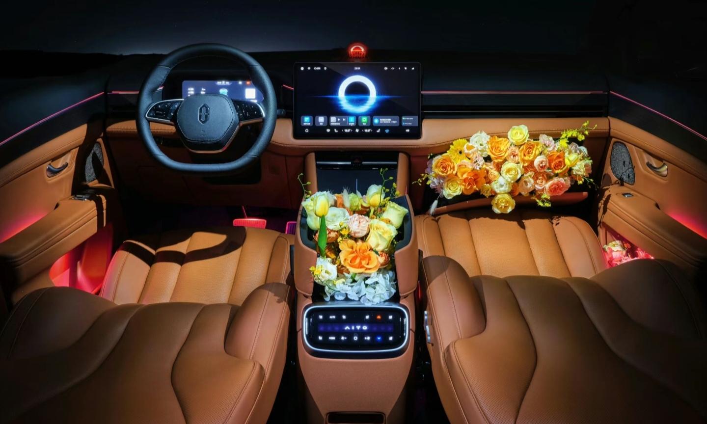 在車(chē)尾部分,當(dāng)然也不會(huì)有任何不同,貫穿式尾燈車(chē)頂擾流板,蚌殼式尾門(mén)和保險(xiǎn)杠部分大面積車(chē)身同色裝飾等元素都不會(huì)缺席。在內(nèi)飾部分,設(shè)計(jì)層面也不會(huì)有太明顯的變化,一是新增的問(wèn)界M7同款式赤茶橘內(nèi)飾,二是中控屏幕上方增加了星環(huán)散射體交互機(jī)構(gòu),其他也沒(méi)有明顯的不同,所以說(shuō)變化沒(méi)有想象中那么大??赡苁抢峡钴?chē)型提升已經(jīng)足夠明顯,確實(shí)不需要大的修改。