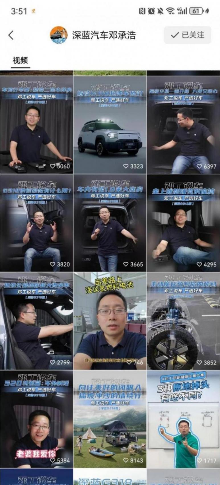 清華碩士畢業(yè)的鄧承浩作為總經(jīng)理,化身“鄧工”在視頻號(hào)上開(kāi)了兩檔節(jié)目,分別是《鄧工講新能源》、《鄧工說(shuō)車,嚴(yán)選好車》,猛的時(shí)候,一天推兩個(gè)視頻。雖然大家都知道這是廣告,但現(xiàn)在只要開(kāi)屏,誰(shuí)不看廣告?