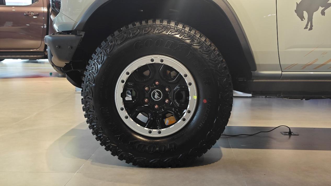 輪胎也是烈馬的一大亮點,幾乎是所有原廠量產硬派越野車里唯一提供大尺寸輪胎的。今天實拍的這輛荒地版搭載固特異的AT越野輪胎,尺寸為315/70 R17。