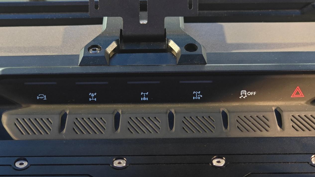 由于烈馬前橋是雙叉臂結構,也就是我們俗稱的軟橋結構,受天生結構的限制,在過一些難度較高的交叉軸和炮彈坑時,它無法做到像硬橋車那樣有非常大的離地行程。有了可斷開防傾桿這個功能后,能讓車輛在比較極端的路況下,車輪能更好的接觸地面,增加車輛的通過性,減少陷車的風險。這個功能只有在次頂配的荒地版和頂配的大沼澤地版上才有配備。
