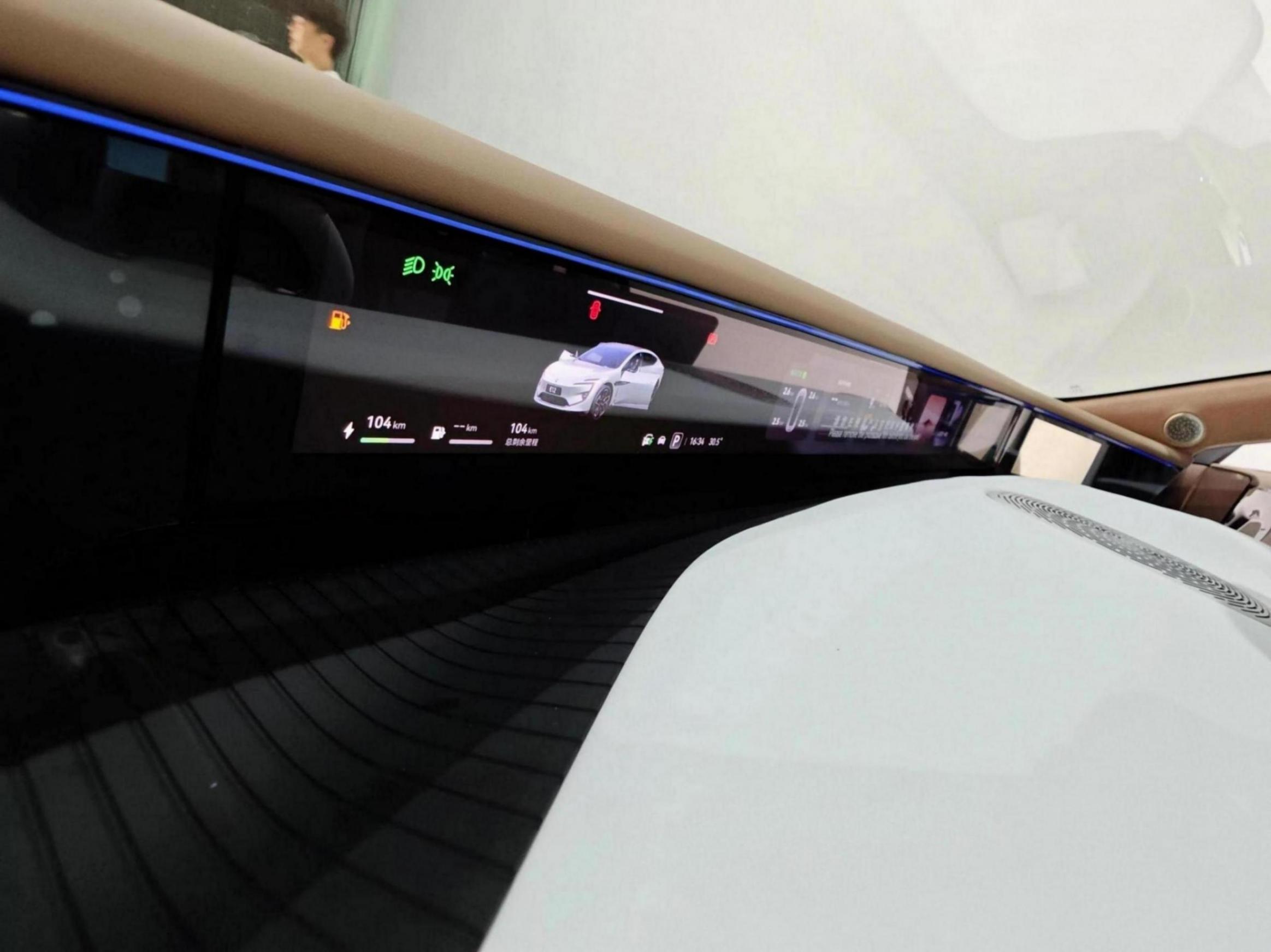 儀表臺前部搭載了一體式的遠端屏,且阿維塔07可選擇電子外后視鏡,故整個一體式遠端屏可顯示的內容較為豐富。在方向盤和中央中控屏部分的設計與阿維塔12上的近似,異形方向盤雖然有一定的爭議,但為了與整個內飾風格吻合,在阿維塔07內依舊被用到了。