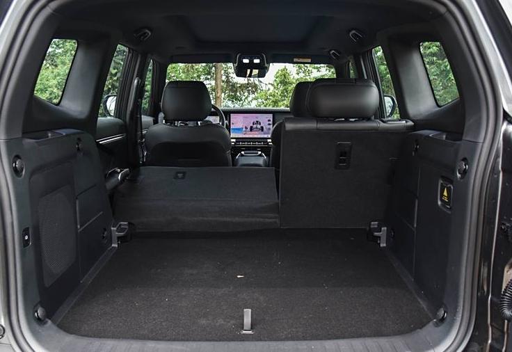 尾部造型延續(xù)了粗獷的設(shè)計風(fēng)格,粗壯的后保險杠造型與前保險杠形成呼應(yīng),配備外掛式備胎,采用側(cè)開式尾門結(jié)構(gòu)。尾燈雖然尺寸不大,但立體感十足,點亮后效果還是很吸睛的。該車還將配備原廠拖車鉤與高位剎車燈,進一步保障越野行駛安全,頂配車型還提供電吸尾門。
