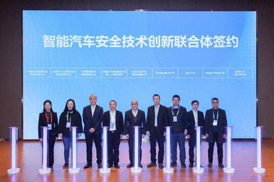 活動現場,由長安汽車牽頭,經過6個月籌備,凝聚8家行業優質產學研力量,組建起來的智能汽車安全技術創新聯合體正式簽約。該聯合體將聚焦智能新能源汽車安全技術,著力推動關鍵核心技術攻關及產業化應用,全面構建高效共生共創共贏的汽車科技創新生態。