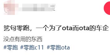 很明顯可以看到,基本都是一些無關痛癢的小功能,絕對稱不上一次大版本的OTA更新,這也是把一眾C11/C01車主給氣的夠嗆,評價零跑“為了OTA而OTA”。
