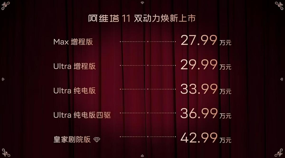 繼07增程版、12增程版后,阿維塔也推出11增程版,12月2日新車正式上市,共帶來5款車型,售價區間為27.99萬-42.99萬元。作為年度換款,新車除了對動力系統進行了調整外,在一些細節層面也做了變動。