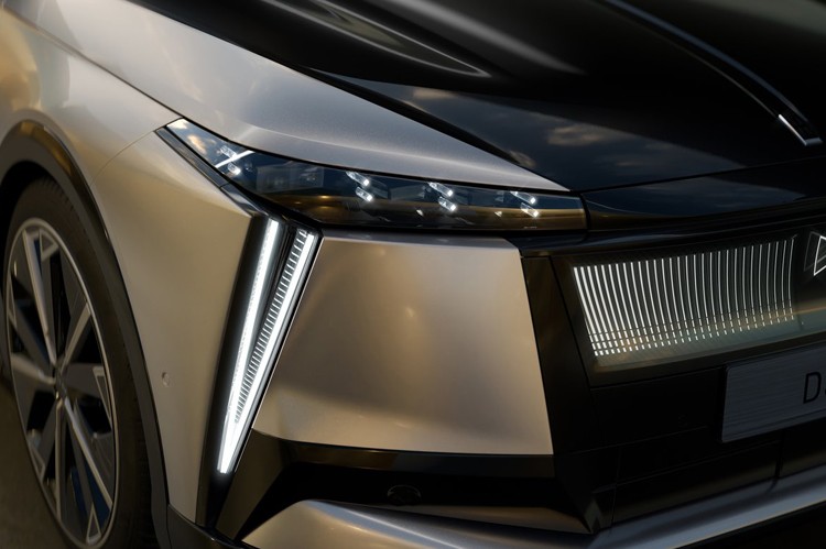 再來看細節,官方稱DS N°8的設計靈感來源DS Aero Sport Lounge與DS SM TRIBUTE的概念設計,車頭配備了可發光的封閉式中網,表明了其新能源產品的身份。下方能看到矩形的進氣口以及兩側的導流槽設計,還是較為犀利的。