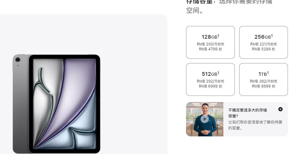 11英寸iPad Air的128GB Wi-Fi版售價4799元,而1TB Wi-Fi版售價高達8699元,1TB蜂窩網絡版本的價格更是高達9999元。