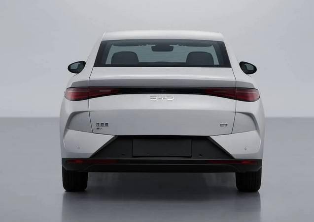 從釋出的圖片中不難發現,比亞迪e7的車尾設計頗具現代感,采用了流行的貫穿式尾燈,線條勾勒得既流暢又充滿活力。而后包圍的獨特造型,更是為車尾的整體視覺體驗增添了一抹亮色。