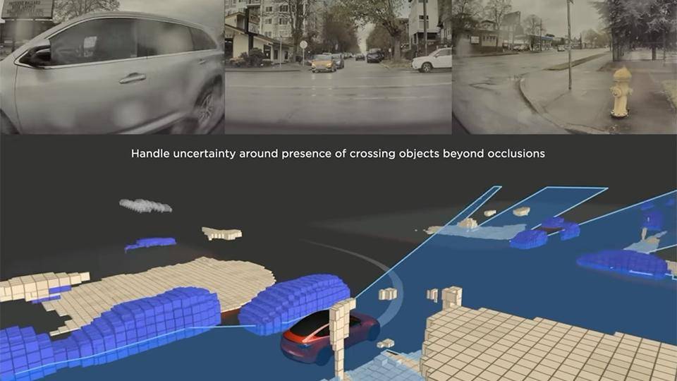 所以,問題還是出在了軟件層面上。大家都知道,F(xiàn)SD的感知模塊,是基于HydraNets架構(gòu)搭建的,簡單說就是整合了多個(gè)視覺識別任務(wù)到單一網(wǎng)絡(luò)上,通過以Transformer為主干網(wǎng)絡(luò)+BEV感知網(wǎng)絡(luò),從而實(shí)現(xiàn)對車輛周圍環(huán)境的感知,這也是目前國內(nèi)智駕系統(tǒng)的技術(shù)底層架構(gòu),但區(qū)別和核心,就在FSD用了Occupancy占用網(wǎng)絡(luò),準(zhǔn)確來講,這是一類結(jié)合了語義分割和柵格占據(jù)地圖法的技術(shù),除了給圖像中的每個(gè)像素分配給一個(gè)3D占用特征,再將環(huán)境分多個(gè)柵格,并將每個(gè)柵格標(biāo)記為占用或空閑的方法,最終可以對環(huán)境進(jìn)行建模,并在此基礎(chǔ)上進(jìn)行路徑規(guī)劃等操作,聽起來比較復(fù)雜,但我們劃個(gè)重點(diǎn),“3D占用特征”,最直白的話來理解,就是通過感知硬件架構(gòu),把世界環(huán)境分成無數(shù)個(gè)單元格,再根據(jù)障礙物的形態(tài)、體積,給到對應(yīng)的坐標(biāo)數(shù)據(jù),精度上甚至能做到厘米級,沒錯(cuò),小米正在做的BEV變焦技術(shù),就和它有相當(dāng)類似的效果,但,不同之處,就在于Occupancy網(wǎng)絡(luò)是可以不用像激光雷達(dá)做實(shí)時(shí)掃圖,或者反復(fù)深度學(xué)習(xí)做障礙物白名單標(biāo)定,只要系統(tǒng)識別到,就立馬能出數(shù)據(jù)結(jié)果,在CNN卷積神經(jīng)網(wǎng)絡(luò)的推演下,理論上說有路沒路都能開。
