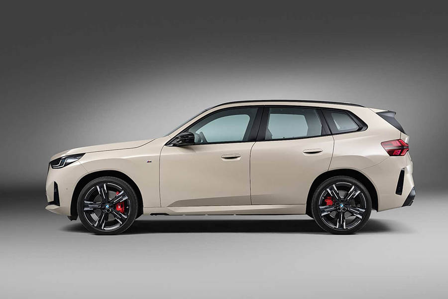 外觀方面,X3 M50采用專屬的M黑化運動格柵,前臉裝飾件也進行了黑化處理,提供7款標配車漆、3款常規選裝車漆。車身尺寸方面,新車長寬高分別為4755/1920/1660mm,軸距為2865mm,新車提供2款輪圈,分別為雙色21英寸1037M型星式輪輻鋁合金輪圈(標配)和黑色21英寸1037M型星式輪輻鋁合金輪圈(5000元選配),輪胎規格為前255/45 R20 105Y XL,后285/40 R20 108Y XL。車輛尾部,后包圍也進行了黑化處理,加入了雙邊共兩出排氣。