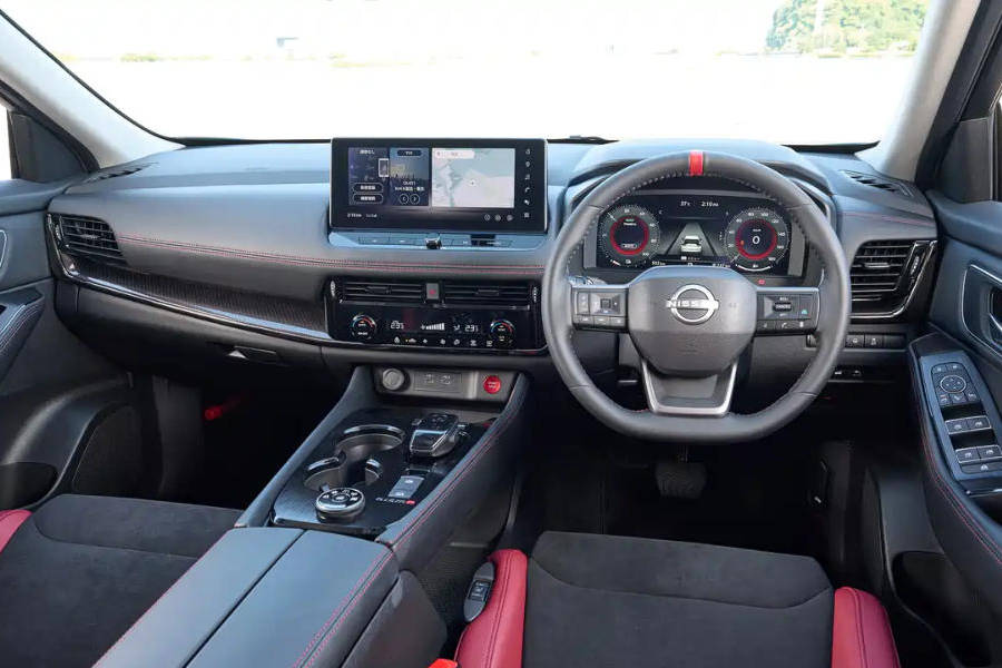 內飾方面,奇駿NISMO以黑色為基調,搭配紅色點綴,延續了NISMO車型特有的運動感與品質感,同時保留了奇駿原有的舒適性與功能性。針對追求運動體驗的用戶,提供“NISMO專用調校RECARO運動座椅”選項,該座椅在彎道時能有效抑制身體晃動,增強駕駛體感,同時配備座椅加熱功能,兼顧運動屬性與舒適性。前排座椅頭枕帶有NISMO標識,進一步強化運動氛圍。