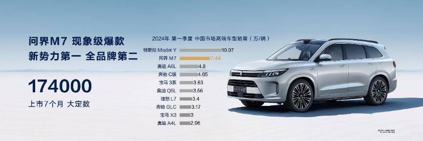 全場(chǎng)景智慧旗艦SUV問界M9上市短短三個(gè)月內(nèi)累計(jì)大定突破7萬輛,刷新國(guó)內(nèi)50萬元級(jí)別豪華汽車銷售速度紀(jì)錄。2024年第一季度,問界躋身中國(guó)市場(chǎng)豪華品牌銷量前五,見證中國(guó)汽車豪華品牌新格局。