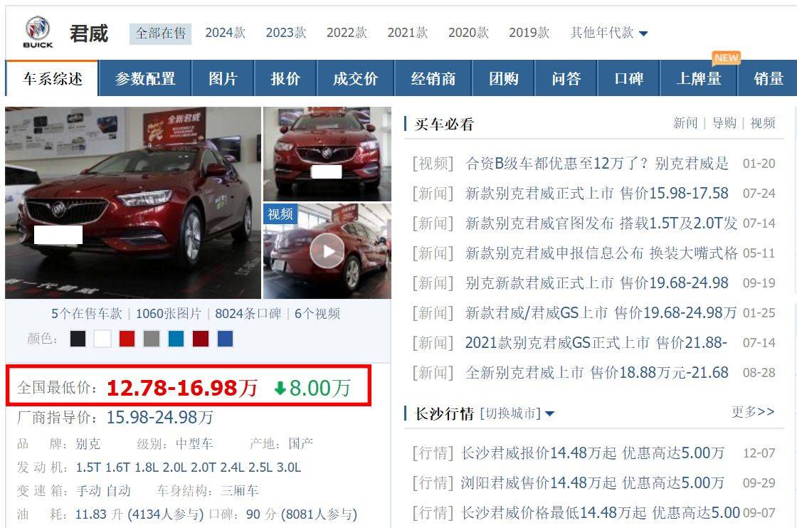 新款別克君威現最低僅13萬,落地15萬就能提,還要買電車?