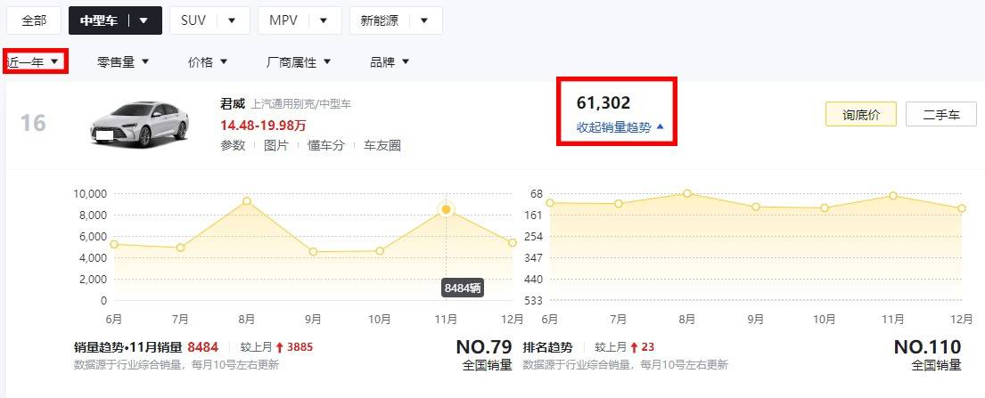 倘若回顧整個2023年,君威車系也是一共賣出去了61302輛新車。雖然排名僅在中型車銷量榜的第16位,但對于一款定位純燃油、又剛經歷過改款的美系中型轎車來說,其成績顯然也還是可圈可點的。